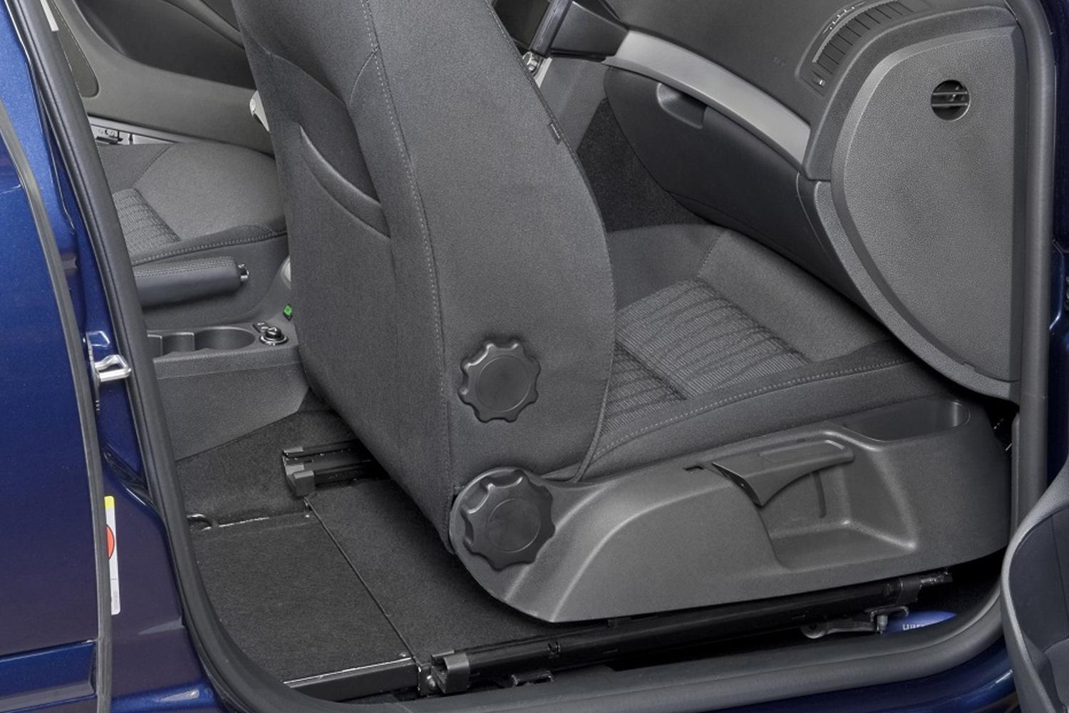 Durch das Easy Load System ist das Einladen des zusammengefalteten Rollstuhls erleichtert. Ein spezielles Untergestell ermöglicht es, dass der Beifahrersitz so weit nach vorne geschoben werden kann, dass ein faltbarer Rollstuhl hinter den Sitz verstaut werden kann. Nachdem Einbau von Easy Load bleiben alle Sitzfunktionen erhalten.